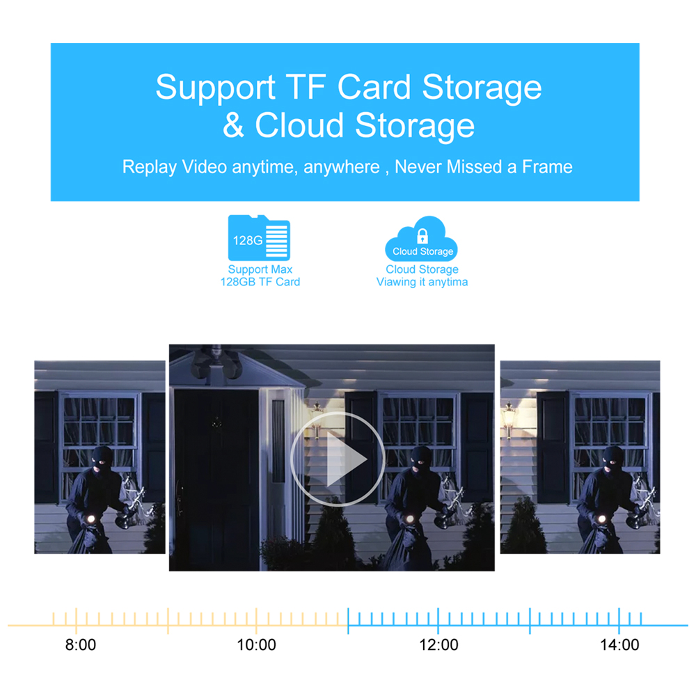 | Storage: | TF Card(Max 128G);Cloud storage /Cloud disk (optional) |