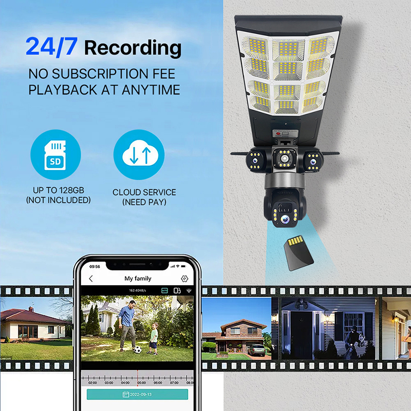 LD002 6MP(2MP+2MP+2MP) 4G WIFI Three Lens 3 Screens Outdoor Solar Streetlight Camera 16W Low Power Cam