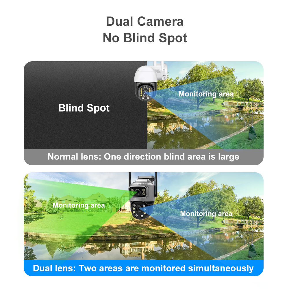 SC20 4MP(2MP+2MP) 4G WIFI Dual Lens PTZ Camera Support Cloud Recording Two-way Voice Intercom Ip66 Water-proof Security Camera