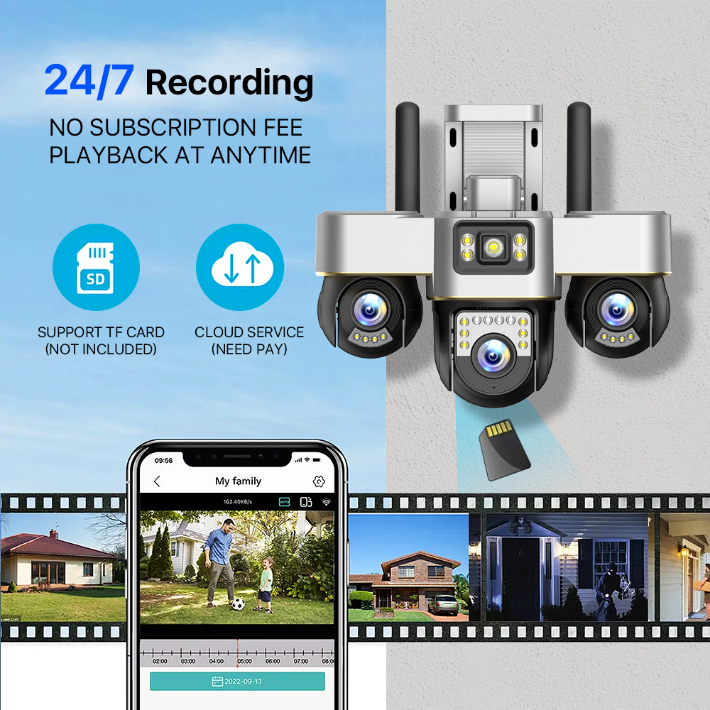 SC31 6MP(2MP+2MP+2MP) 4G WIFI Three Lens 3 Screens Outdoor Camera Voice Alarm Waterproof PTZs Monitor