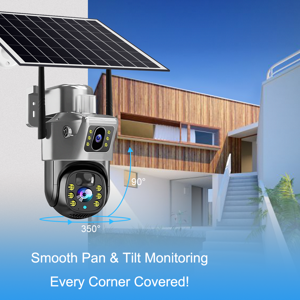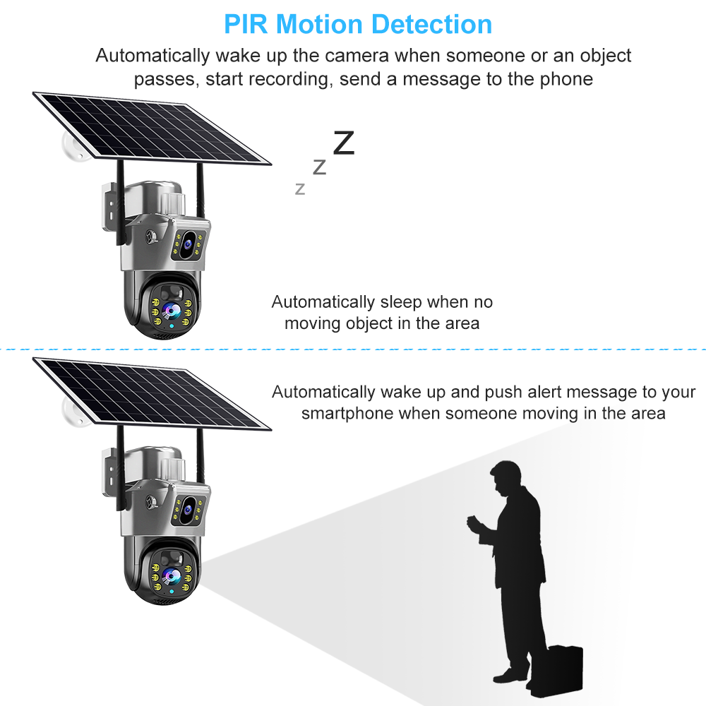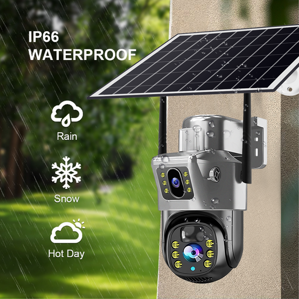 VCS09 6MP(3MP+3MP) 4G WIFI Dual Lens 2 Screens V380 Network Solar Camera Home Smart Black White Security Outdoor CCTV Camera
