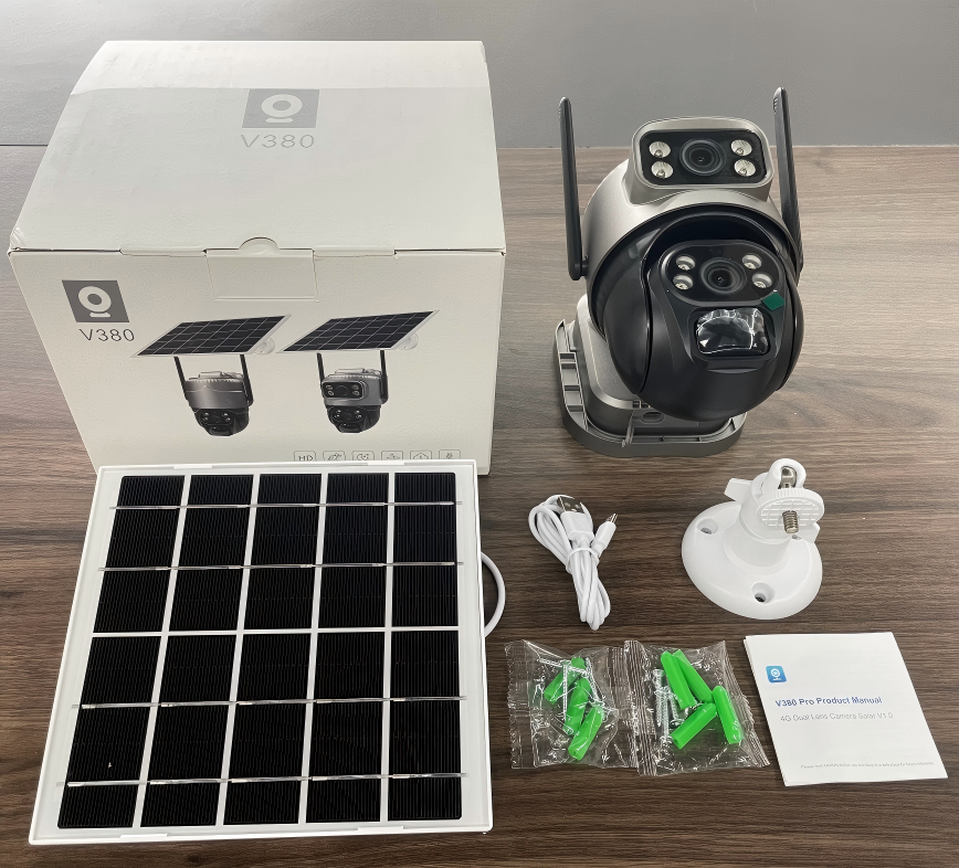 VCS20 4MP(2MP+2MP) 4G WIFI V380 Dual Lens 2 Screens Solar Battery Powered Camera CCTV IP PTZ CMOS Night Vision Security Camera