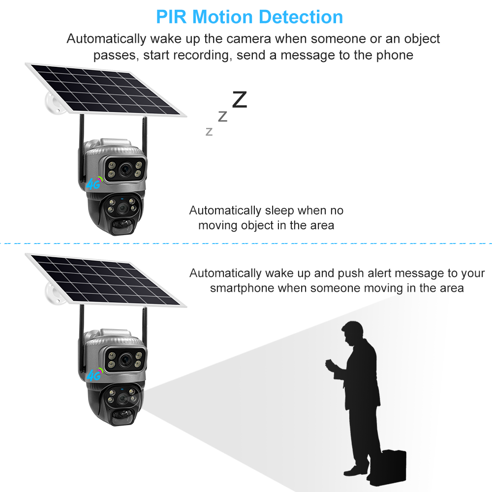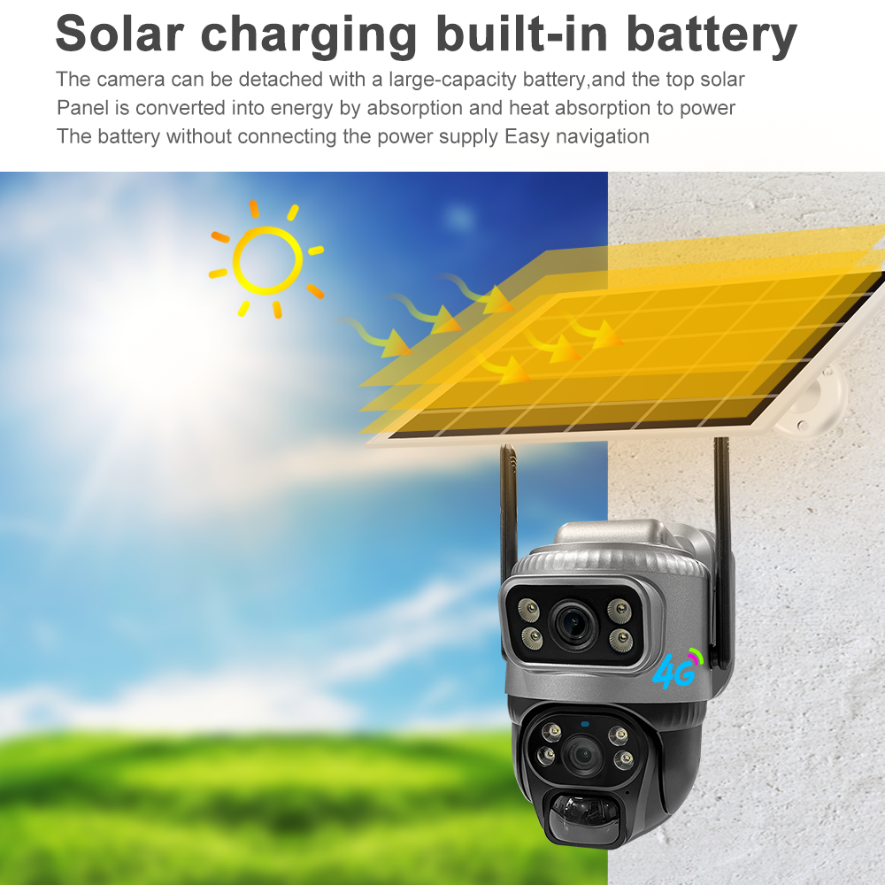 VCS20 4MP(2MP+2MP) 4G WIFI V380 Dual Lens 2 Screens Solar Battery Powered Camera CCTV IP PTZ CMOS Night Vision Security Camera