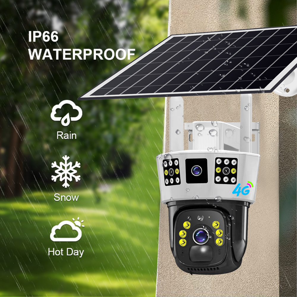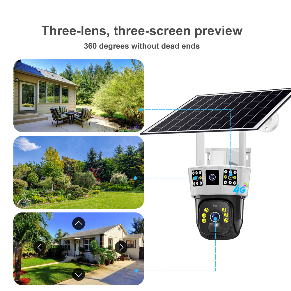VTS01 4MP(2MP+2MP) 4G WIFI Dual Lens 3 Screens Solar PTZ Camera Ultra-low-power PIR Human Body Infrared Sensing Night Vision Monitor
