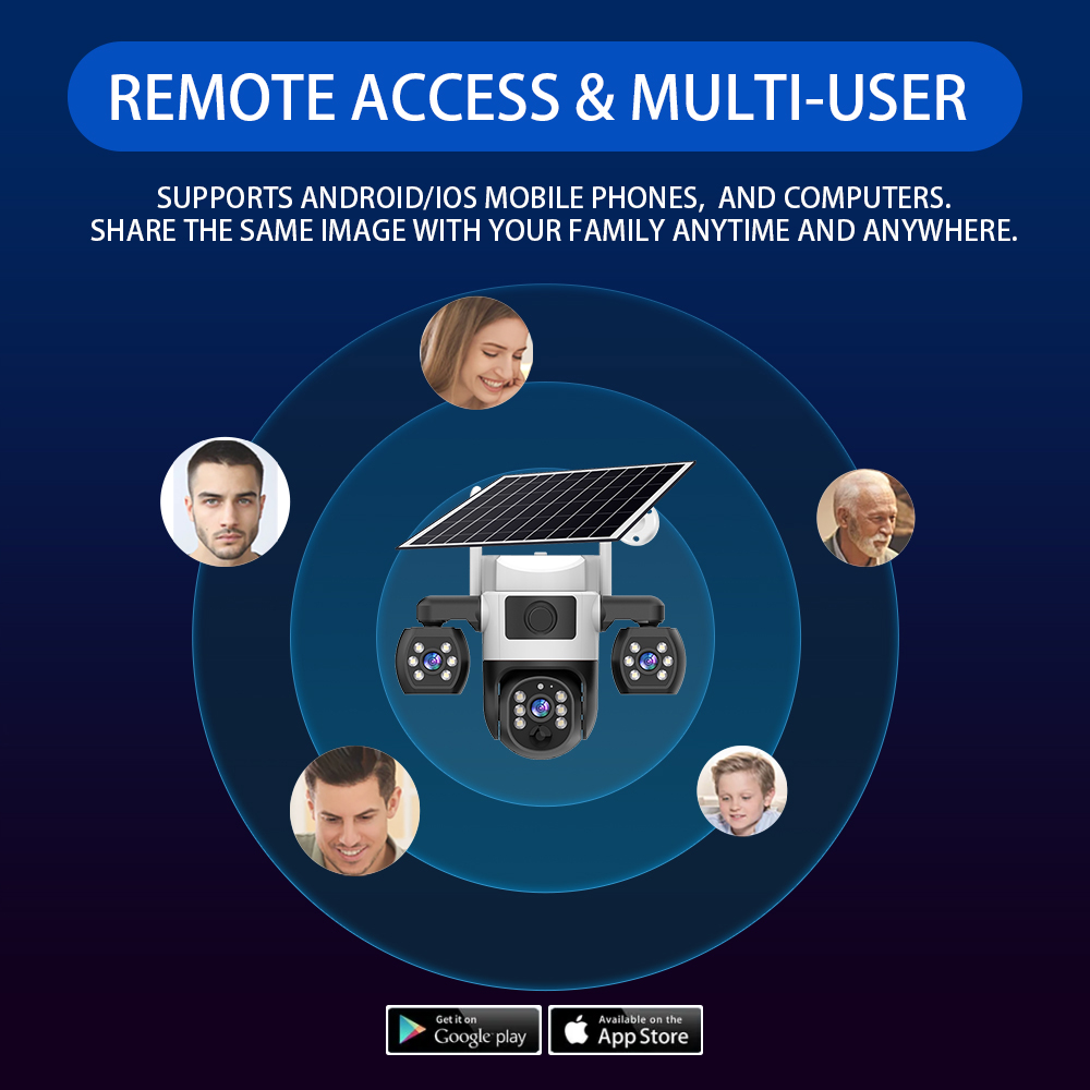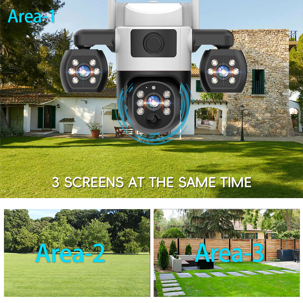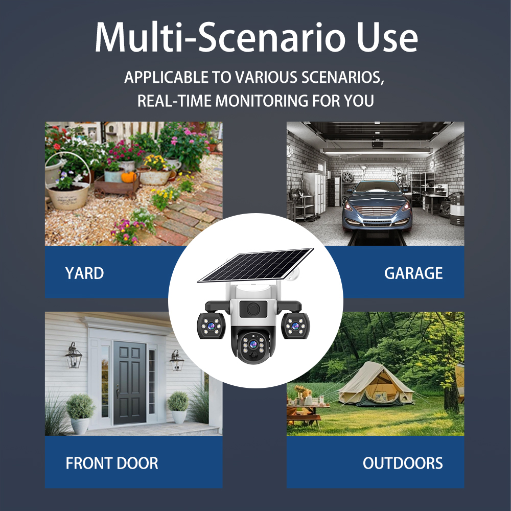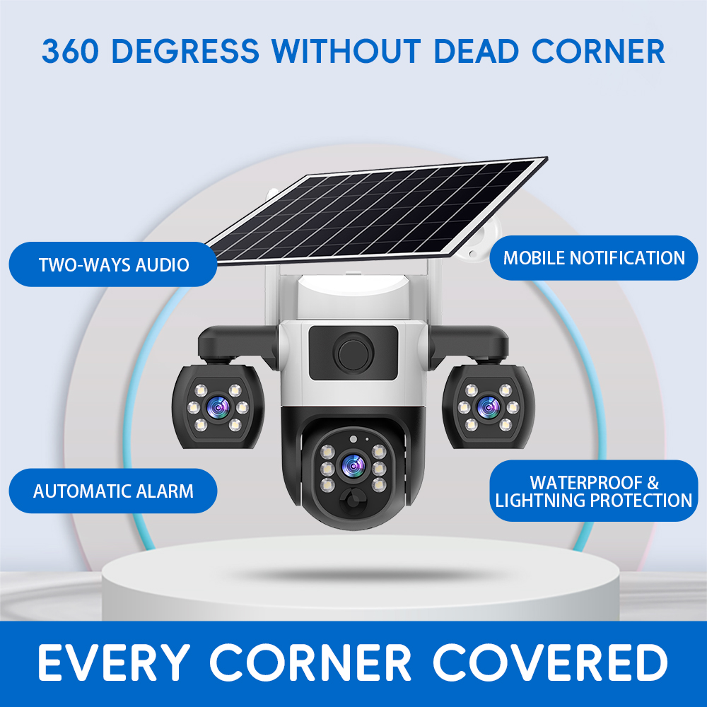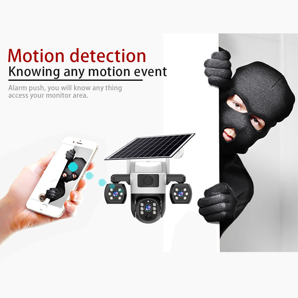 VTS26 6MP(2MP+2MP+2MP) 4G WIFI Three Lens 3 Screens Outdoor Solar Streetlight Camera 8W Low Power Cam